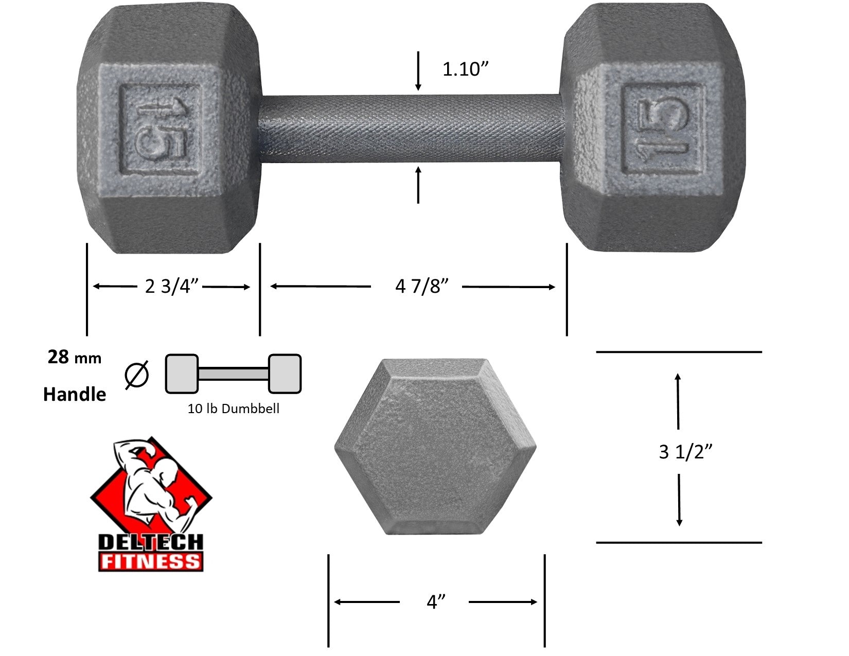 At the heart of any strength training program is the weight. These 15 lb dumbbells are heavy-duty cast iron construction that will last for years. Gray Hammer tone paint. (Sold in Pairs)