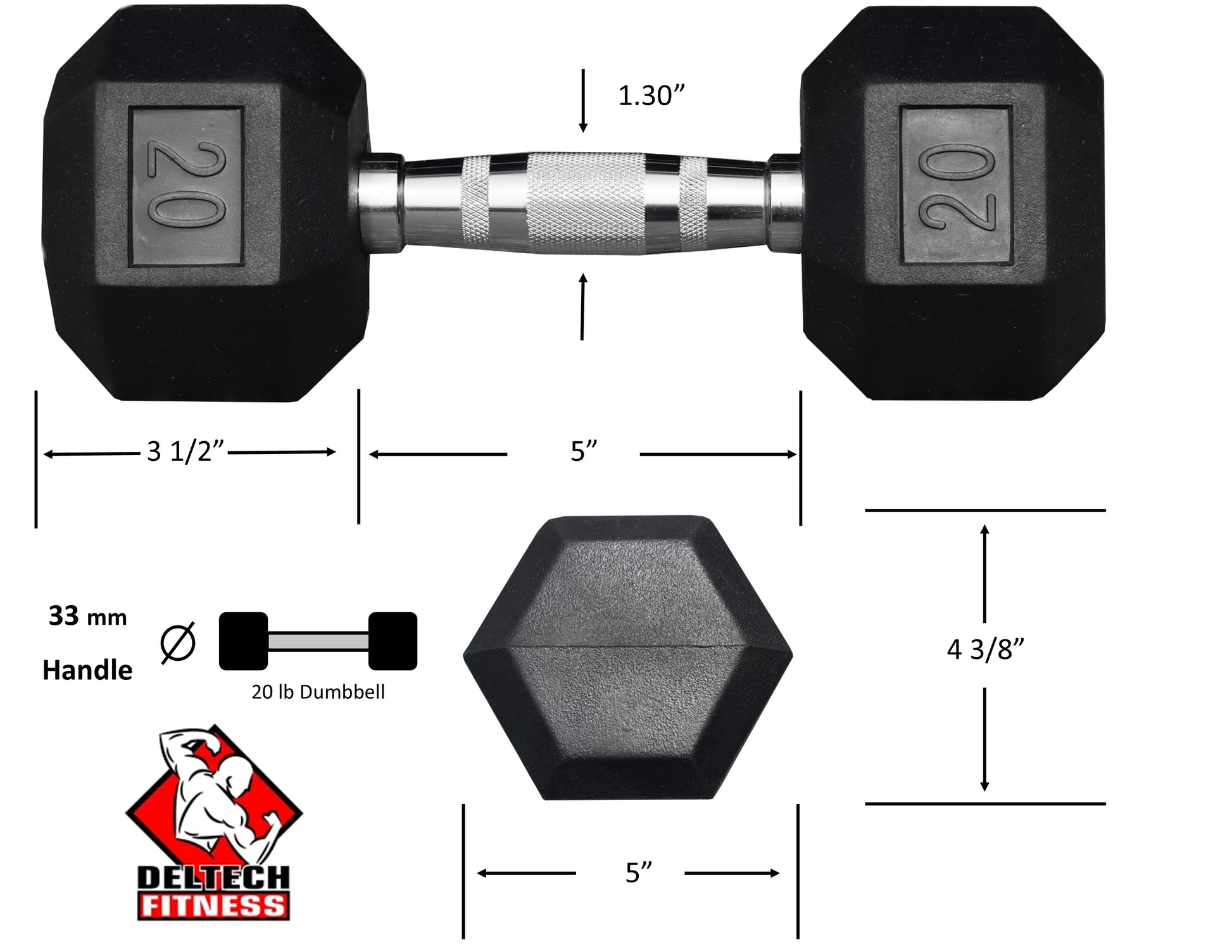 Deltech Fitness 20 lb Rubber Dumbbell Pair (RDB-020)