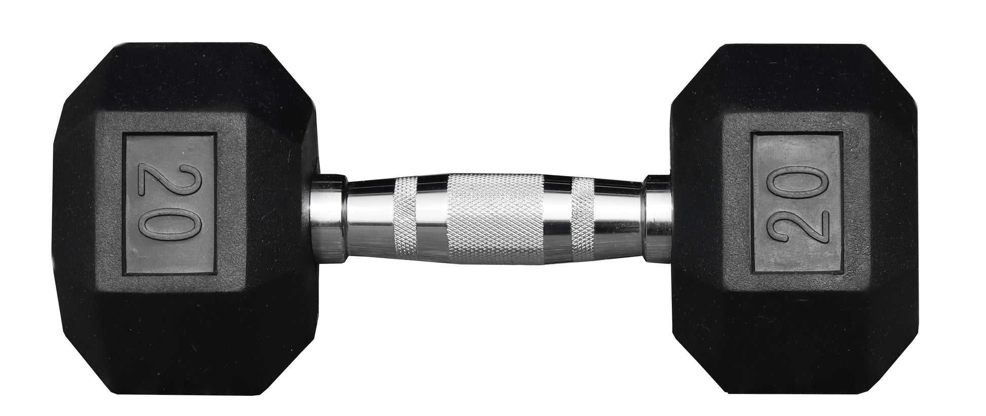 Rubber coated cast iron hex dumbbells with knurled chrome plated handles by Deltech Fitness. Rubber coated cast iron hex dumbbells are a staple in any gym. A good dumbbell set is versatile and durable. The rubber coating is good protection for racks, floors, and banging each other. The contoured handle fits perfectly in your hand and is knurled for anti-slip grip. The hex design will prevent rolling. You can use dumbbells for an unlimited number of exercises. We offer many different sizes to build your Dumbbell collection.