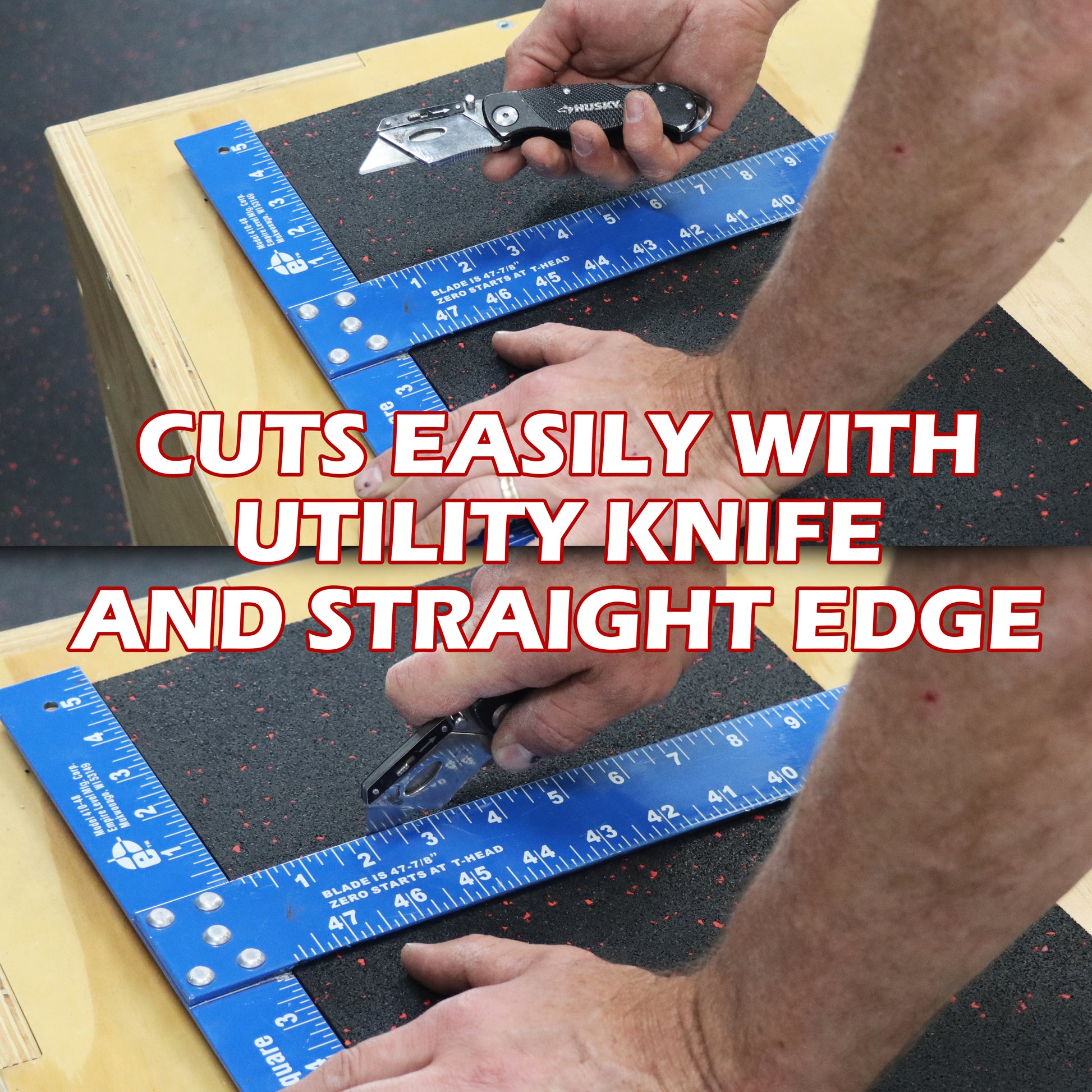 The 4' x 6' x 1/2" Rubber Gym Floor Mat by Deltech Fitness offers robust protection for your gym floors and equipment. Crafted from dense, durable rubber weighing 70 lbs, it withstands heavy weights and high-impact workouts, making it suitable for both home and commercial gyms. Its black surface with red accents adds a professional look while providing excellent traction and shock absorption. The mat’s versatility allows you to use it alone or combine multiple mats for larger coverage. Additionally, it can be easily customized to fit your space by cutting with a sharp utility knife and straight edge, ensuring a perfect fit for any gym layout.