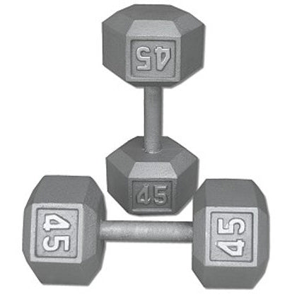 At the heart of any strength training program is the weight. These 45 lb dumbbells are heavy-duty cast iron construction that will last for years. Gray Hammer tone paint. (Sold in Pairs)
