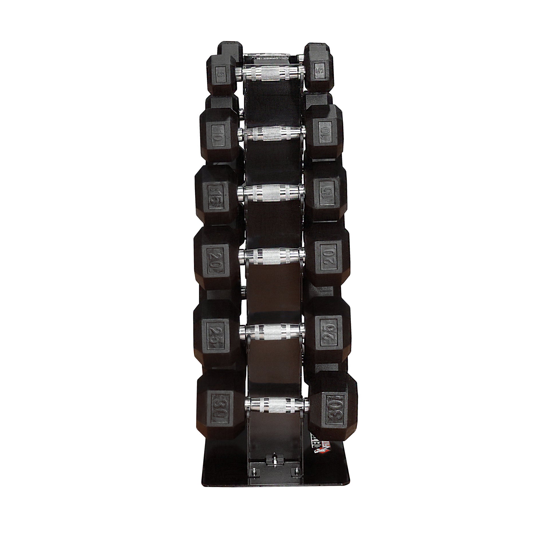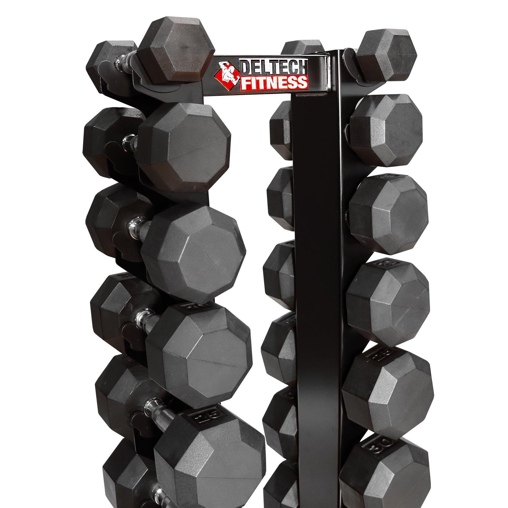 Optimize your workout space with the Deltech Fitness 6 Pair Vertical Dumbbell Rack (DF5100), designed to hold dumbbells ranging from 5 to 30 pounds. Its vertical design maximizes floor space, making it ideal for home gyms or compact fitness areas. The rack’s corner-friendly shape allows it to fit seamlessly into tight spaces while maintaining accessibility. Equipped with durable plastic protectors, it prevents damage to your dumbbell handles and extends their lifespan. Constructed with sturdy materials, this rack ensures stability and long-term use, helping you keep your workout area organized, safe, and efficient.