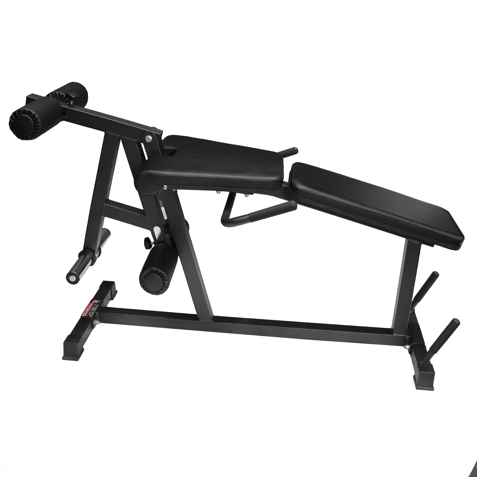 The Deltech Fitness Leg Extension/Leg Curl Machine (DF807) is expertly designed to target and sculpt your thigh and hamstring muscles with precision. Its super sturdy frame, constructed from heavy gauge steel tubing and finished with a durable powder-coat paint, ensures a stable and reliable base for intense workouts over many years. The fully adjustable leg pads accommodate users of all sizes, providing versatility and comfort during exercise. High-density foam cushions the seat and backrest, covered with top-grade, sweat-resistant vinyl that is easy to clean and maintain. For added safety and control, the machine includes hand grips for both leg extension and leg curl movements, promoting steady and secure workouts. Compatible with standard weight plates and Olympic plates—thanks to included Olympic adapters—this machine offers flexibility to suit your preferred resistance. The DF807 is an ideal choice for fitness enthusiasts seeking a durable, adjustable, and effective solution to strengthen and define their lower body muscles.