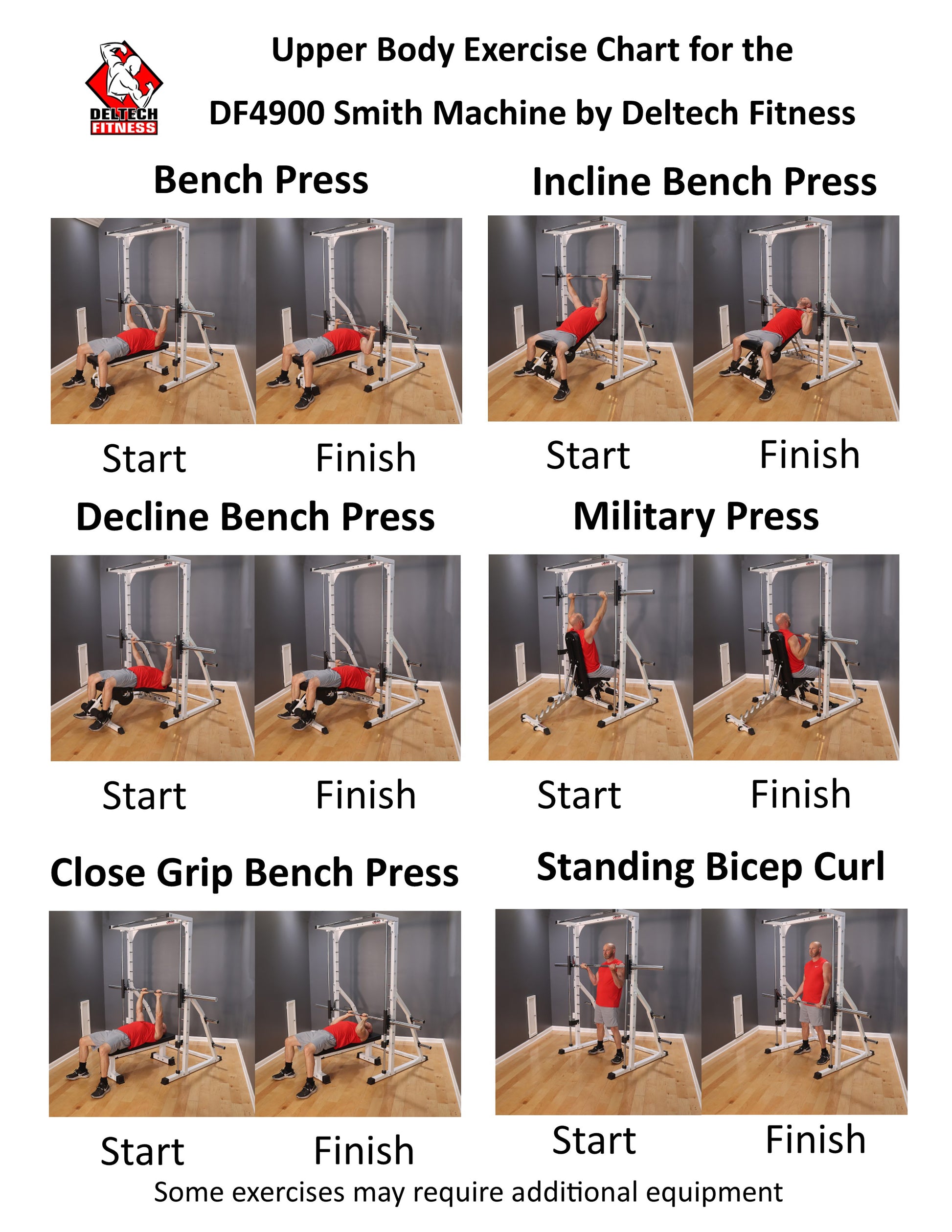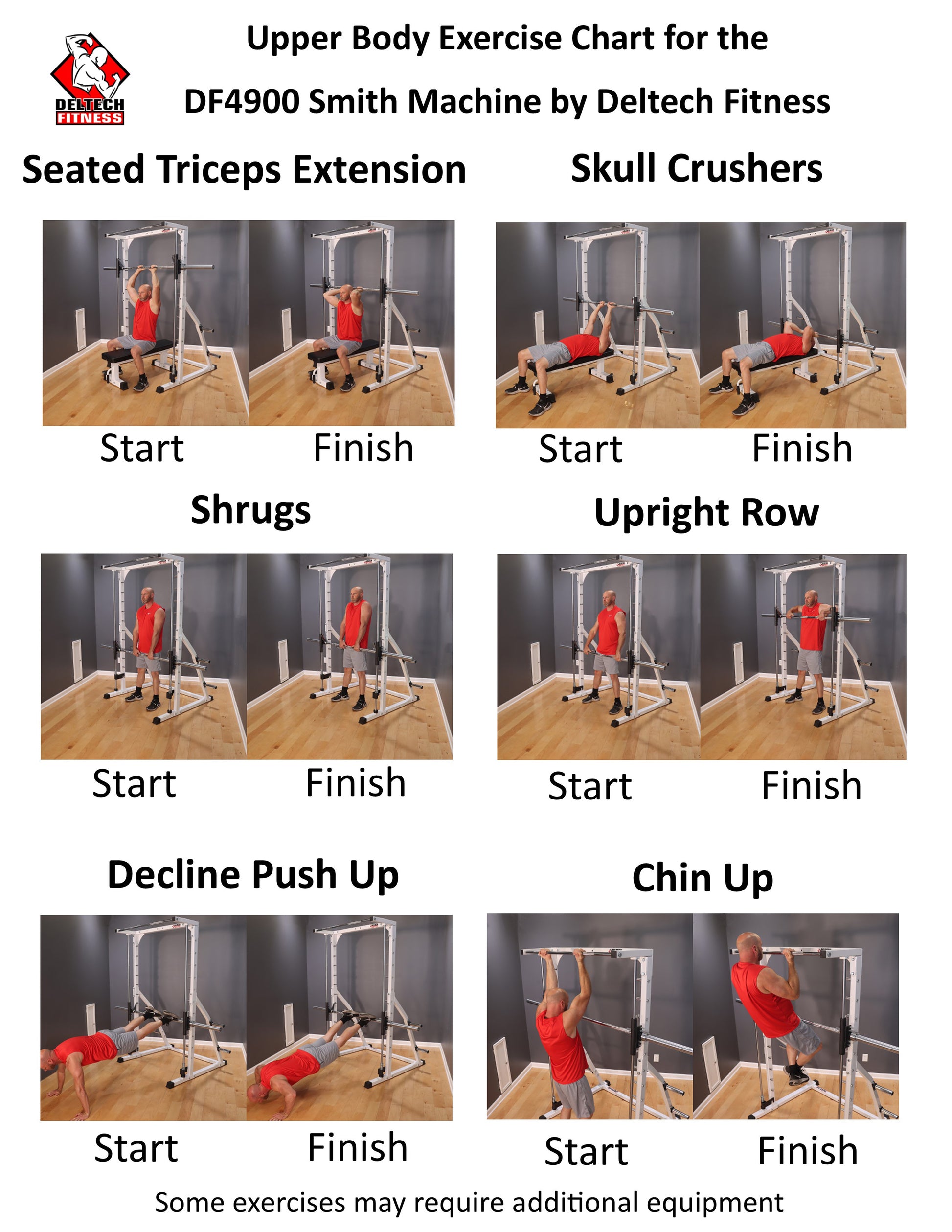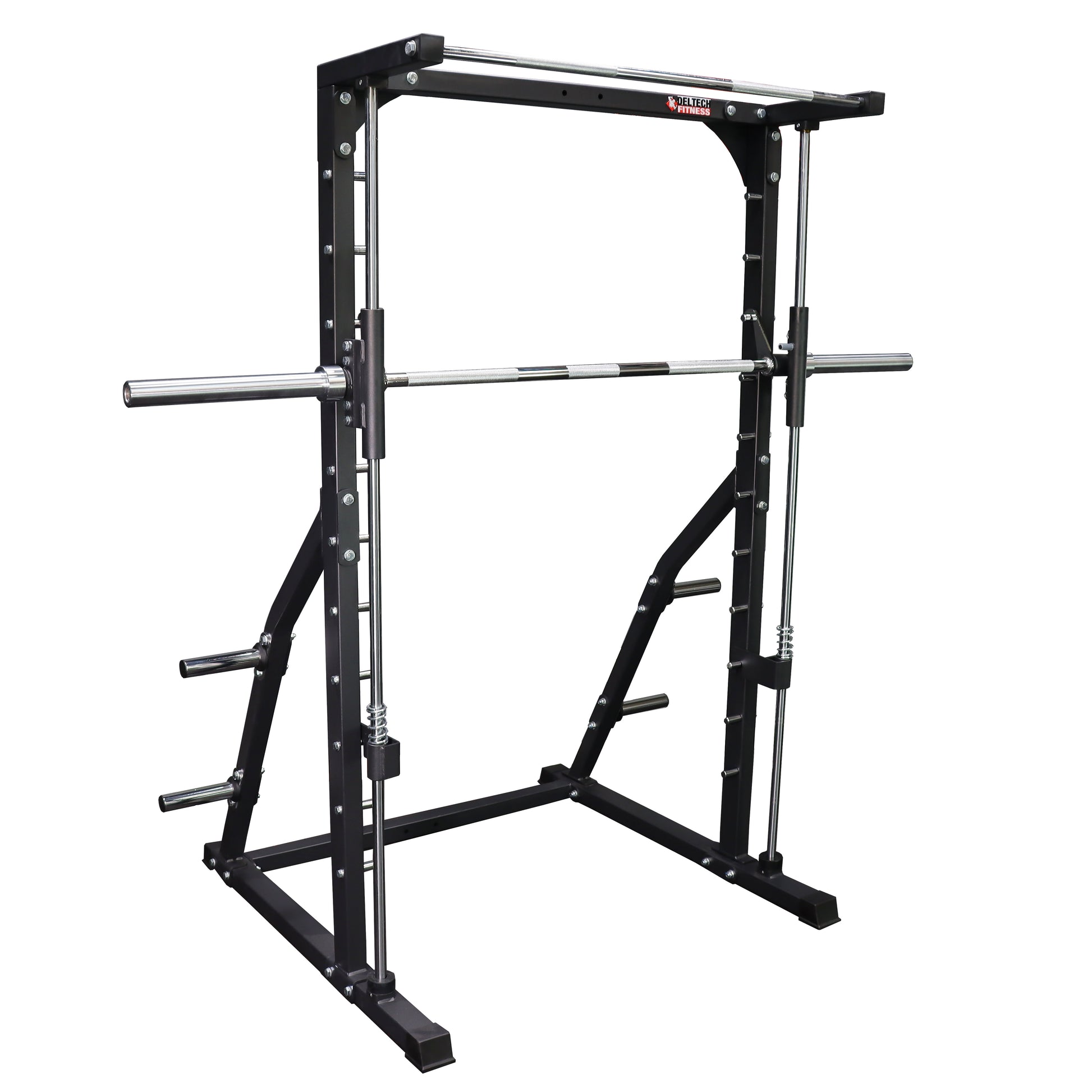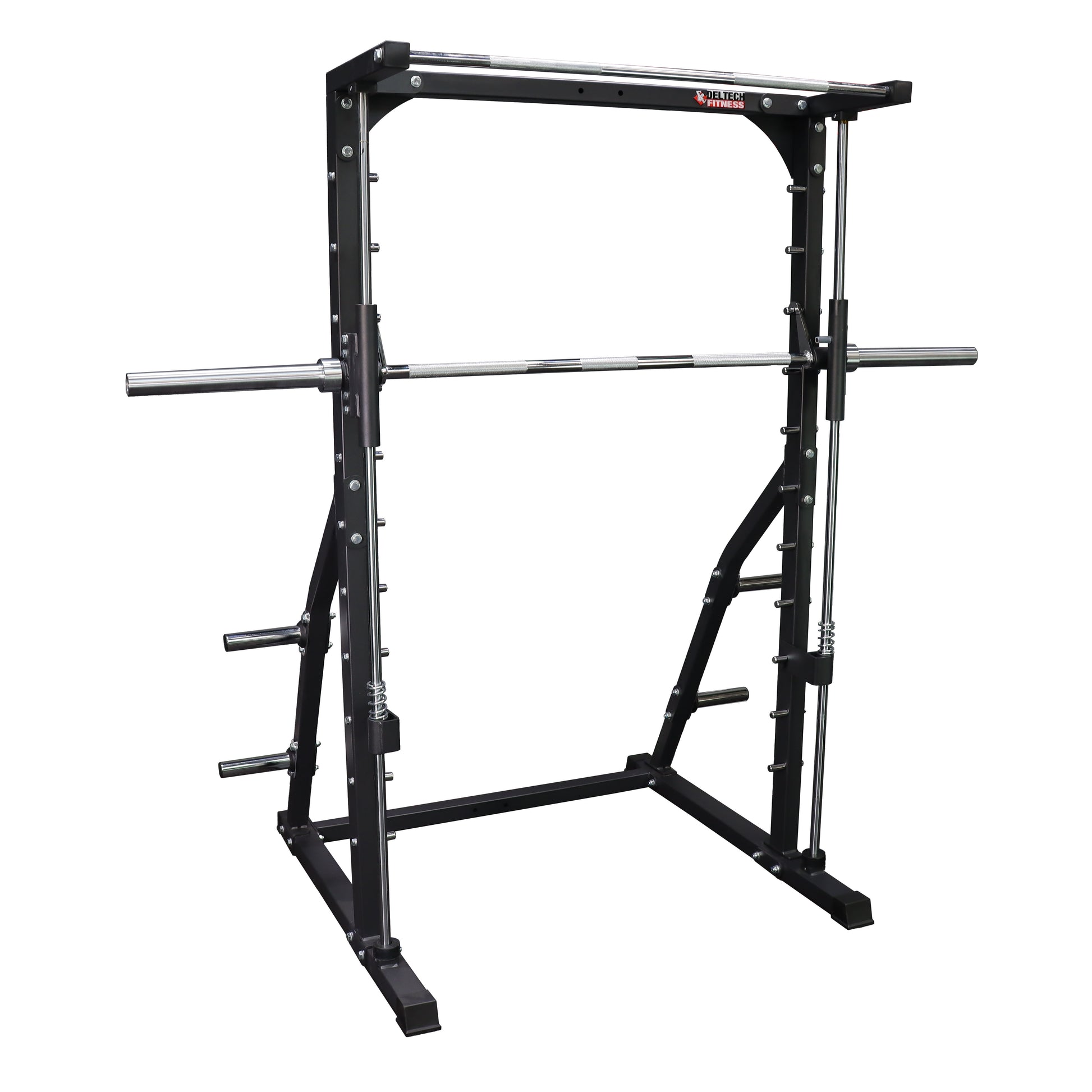 The Deltech Fitness DF4900 Smith Machine delivers rock-solid quality at an affordable home unit price. Heavy-duty steel construction coupled with outstanding quality creates a recipe for a confidence-inspiring, smooth operating machine. No workout will exceed its limitations with an overkill 700 lb weight capacity.