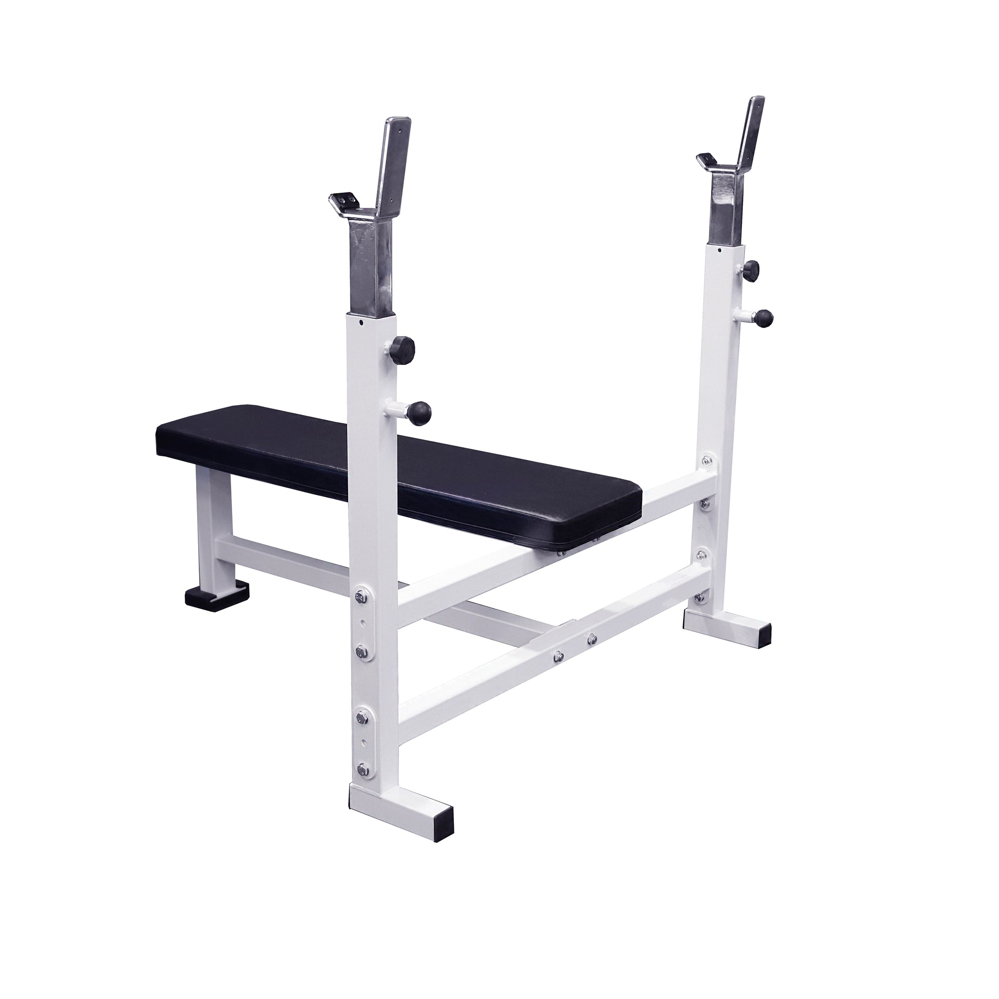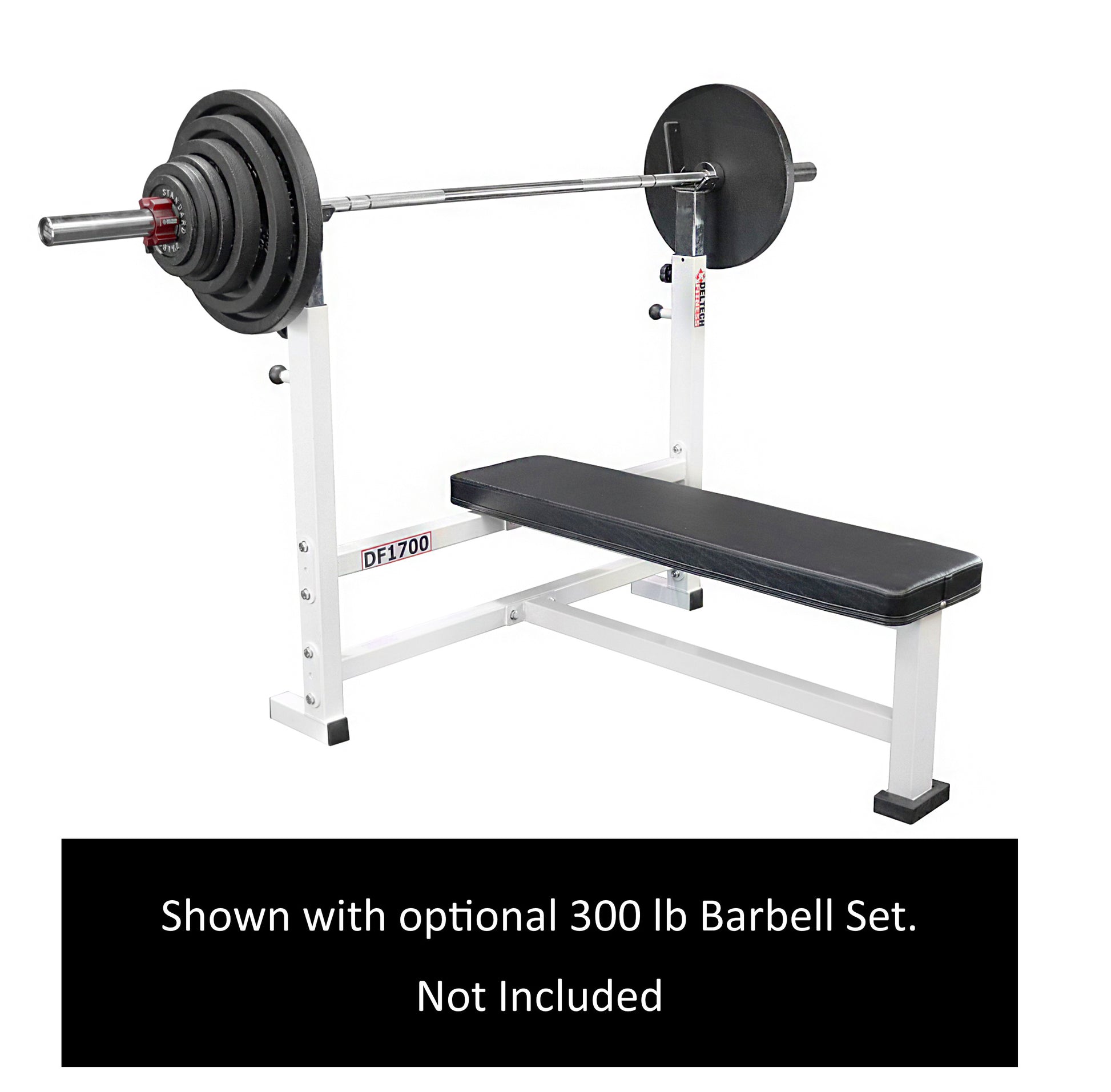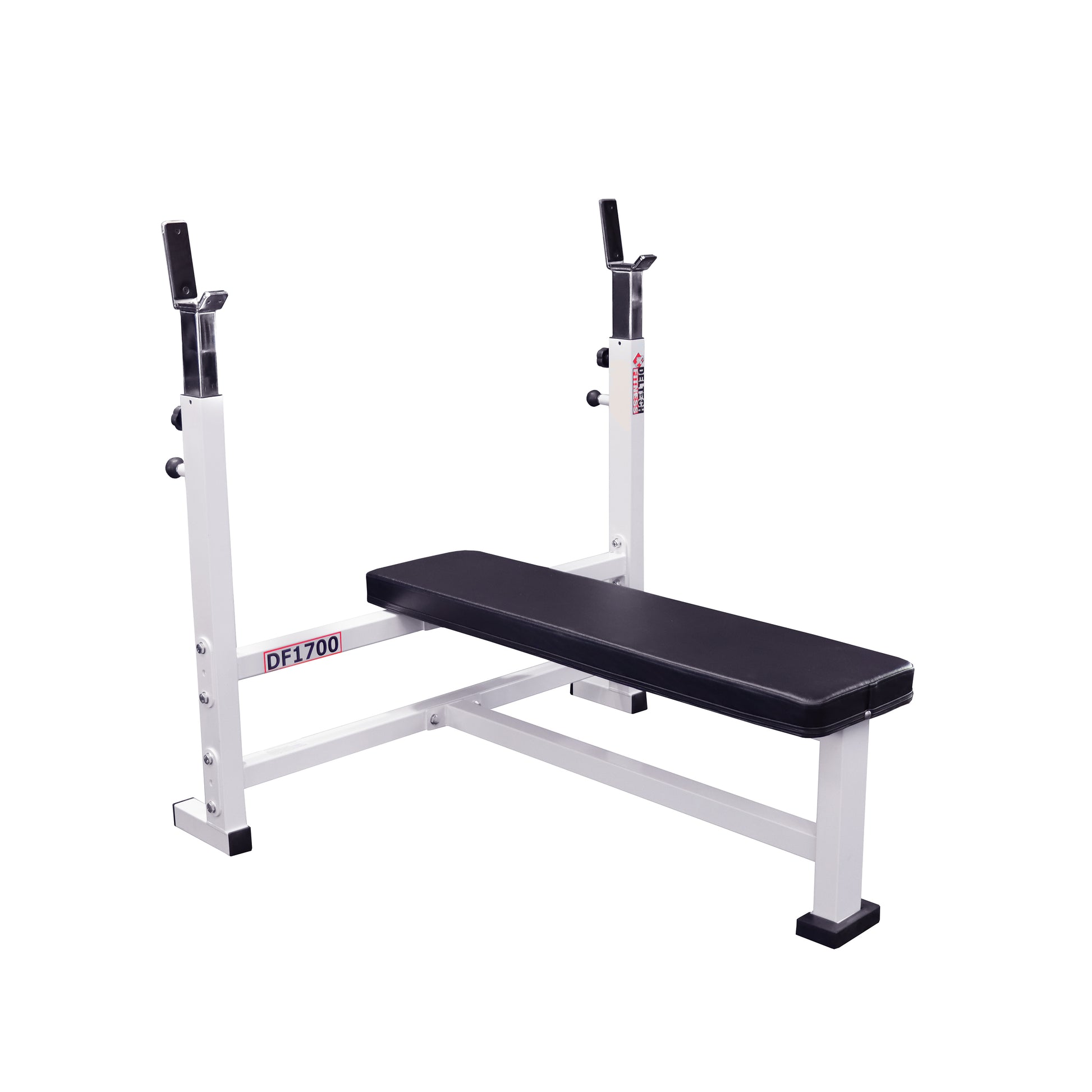 Our Olympic Flat bench press (DF1700) has grit. It is rugged, sturdy, and secure, and you will feel good about letting your family use this bench because it is a powerhouse of an Olympic Bench press. The lockdown knobs eliminate any rattling or play in your weight holder.