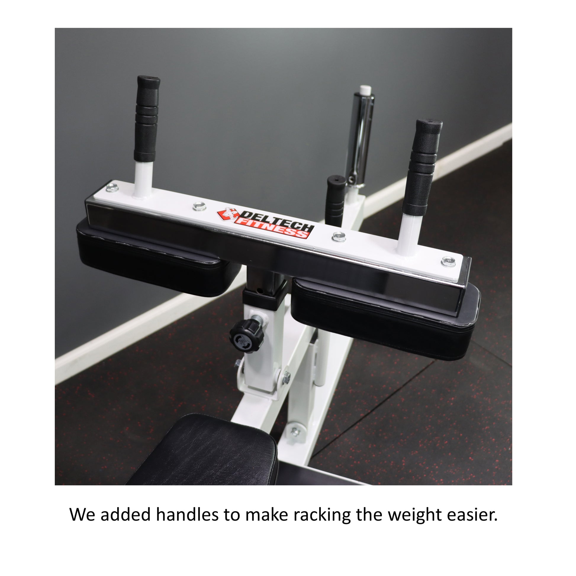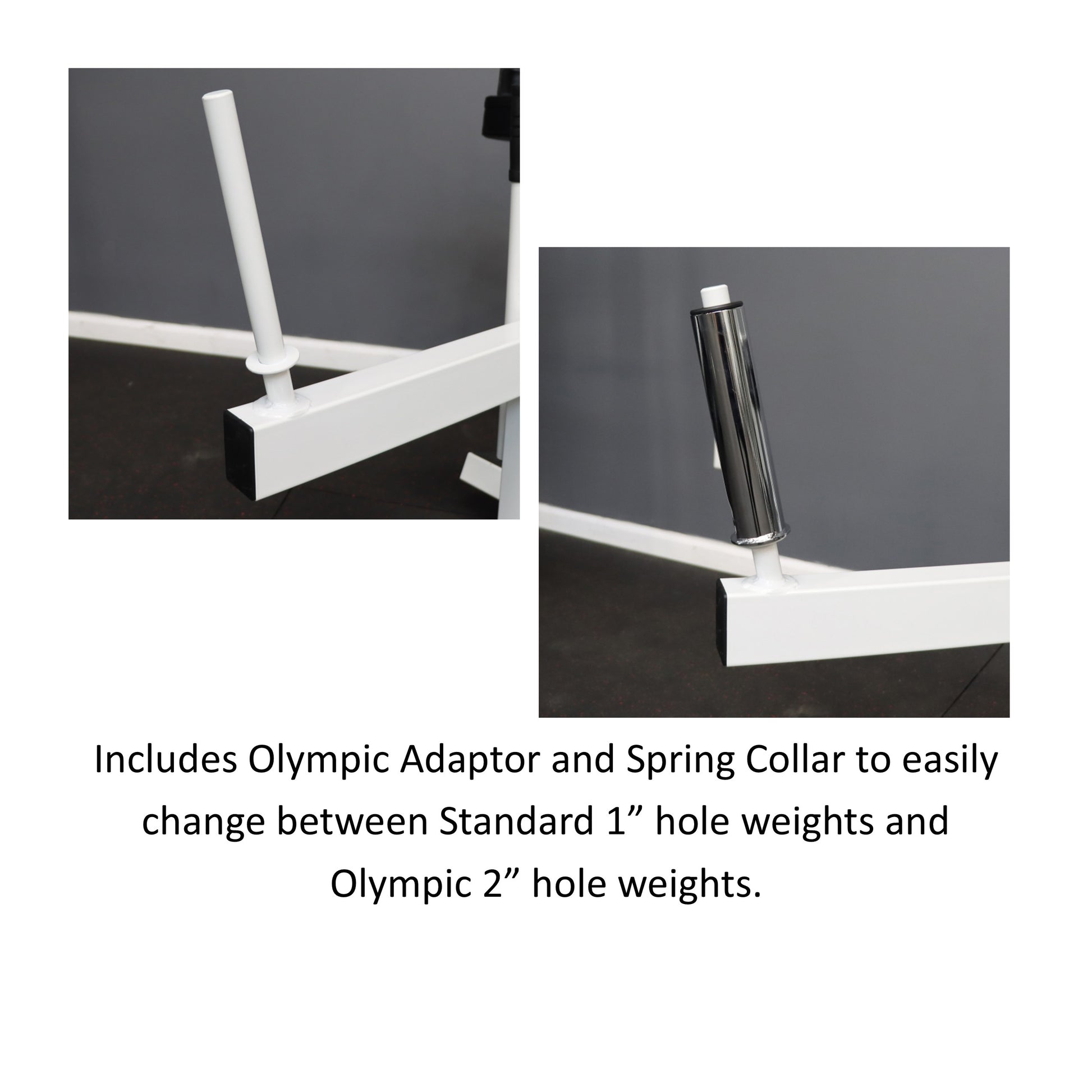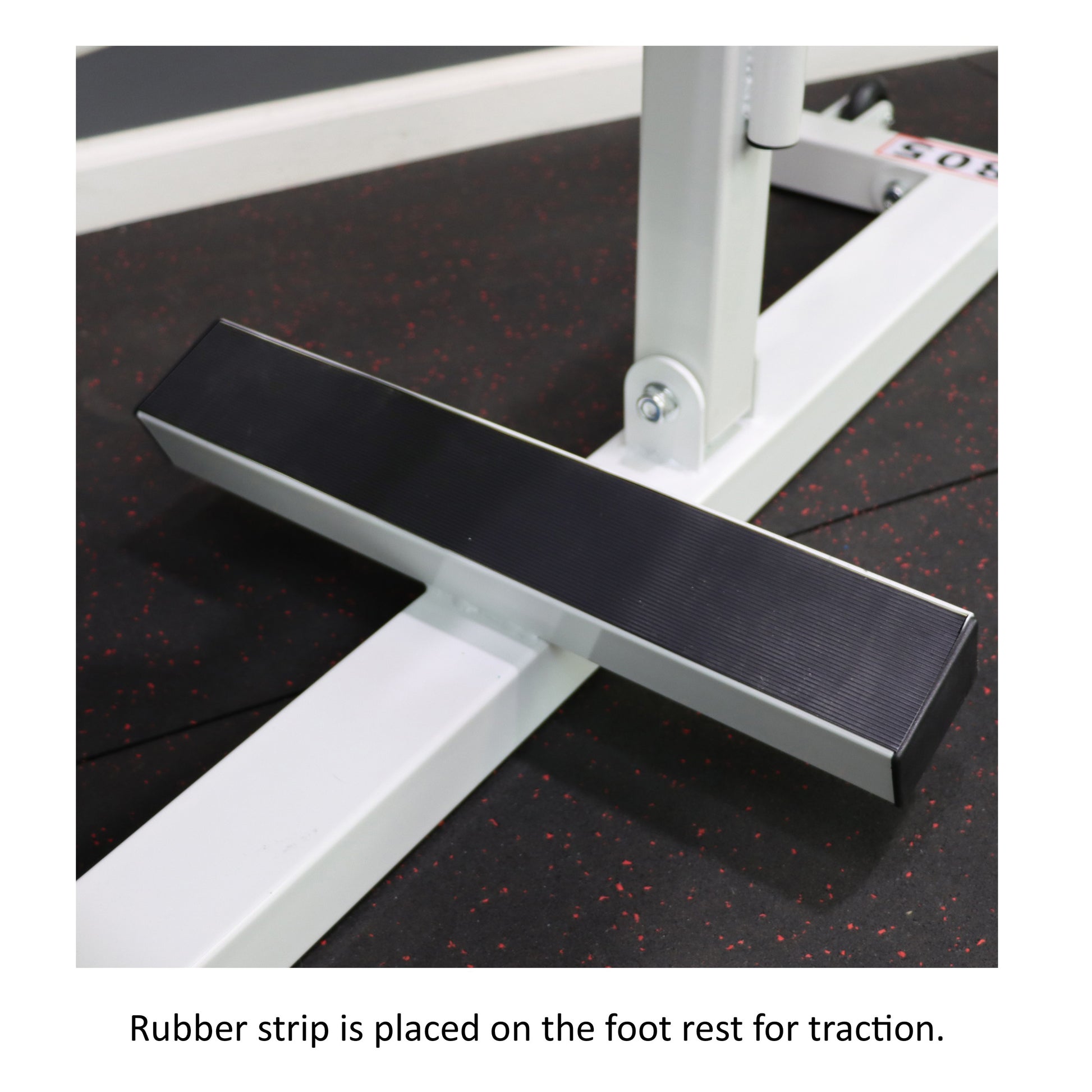 Steel tubing has been welded following AWS guidelines and has been powder coated for extra durability. Our calf machine also features painless modifications with our pull pin adjustment to home in on the height you need. And for extra versatility this product can be used with Olympic or standard plates, adapter included.